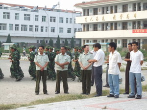 8月23日下午,怀远县武装部政委刘德武一行到龙亢农场中学视察指导军训工作。在训练场上,刘德武政委一行听取了龙亢农场武装部部长王良言同志关于中学高一378名新生军训工作的汇报,并观看了会操表演。通过听取汇报、观看会操表演,刘德武政委对龙亢农场中学军训工作十分满意,同时,他还代表怀远县武装部对参加军训的教官进行了慰问。