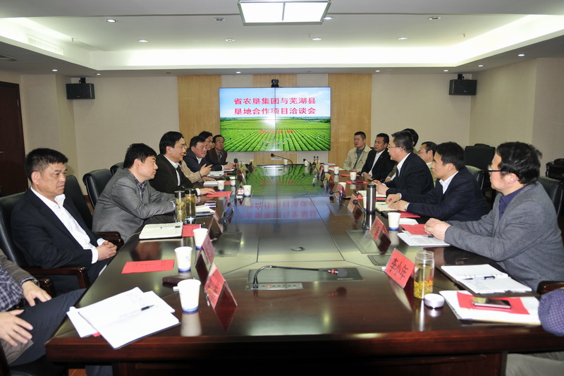 为落实今年初双方签订的战略合作协议,深入推进重点合作项目,4月6日下午,安徽农垦集团与芜湖县举行垦地合作项目洽谈会。集团总经理李卓民到会作讲话,副总经理程军主持会议,副总经理陈仁虎,芜湖县委书记何友旺,县长黄维群,副县长冯显铸、朱群出席会议。省农垦集团办公室、经合部、土地部、皖南垦区开发指挥部、通和房地产集团、皖垦茶业集团、九连山茶场和芜湖县发改委、国土局、规划局负责同志参加了会商活动。