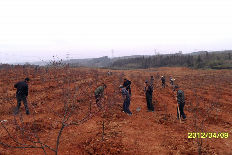 安徽农垦敬亭山茶场根据“十二五”高效农业发展规划,目前正在周王分场加紧建设2000亩城市景观苗木花卉生产基地。该示范园毗陵周王分场场部,占地面积约50亩,主栽红枫、桂花、广玉兰、红叶石楠等品种,计划栽植高档苗木1万株,投资30余万元。示范园整地工作现已全面结束,开始栽植部分苗木,预计于4月中旬完工。图为职工正在栽植红枫(邱宏文)