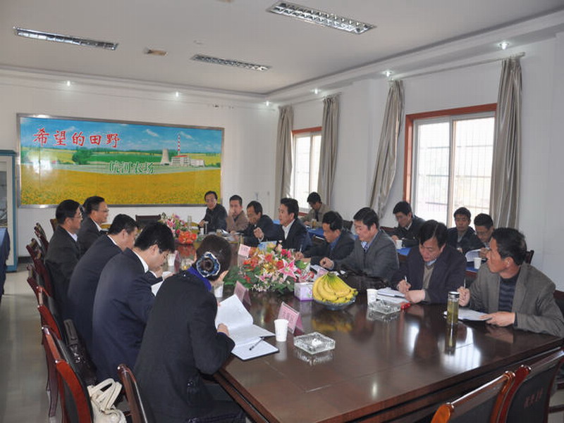 1125上午,省农垦集团纪委书记储诚胜、安庆市副市长宋圣军在皖河农场主持召开垦地合作对接会,就双方战略合作开发地处长江沿岸的皖河、华阳河、普济圩农场举行了会谈。