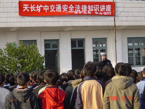 为了强化全体师生的交通安全意识,做到交通安全,警钟长鸣,12月14日,大圹圩农场中学举办了一场以“保护生命,安全出行”为主题的交通安全知识专题讲座,专门邀请天长市交警队大队长到校讲课,使全校800多名中小学师生受到了一次深刻的教育。