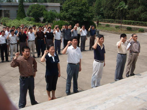 为加强原水家农场和马厂湖农场两场党员之间交流,增进感情,强化认同感和归属感,纪念“七一”,丰富纪念活动的形式,经场研究决定。于“七一”前夕到定远县藕塘烈士陵园举行纪念活动。该陵园是省级文物保护单位,省政府授予首批爱国主义教育基地。纪念活动由场党委副书记、纪委书记王计文主持,党委书记柏华胜讲话。柏华胜强调:要牢记历史,缅怀先烈的丰功伟绩,发扬爱国主义精神,发挥好“两个作用”,增强责任意识,顾全大局,凝心聚力,努力实现我场经济又好又快的发展,以优异的成绩迎接党的十七大胜利召开!