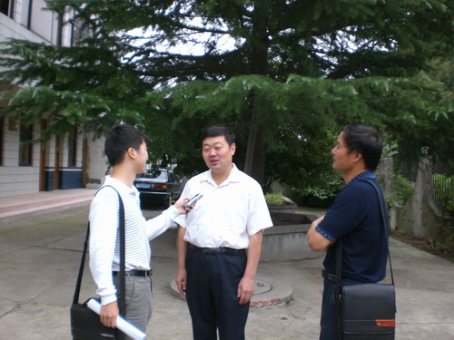 为了进一步加大农垦对外宣传力度,展示农场新形象,在集团公司有关部门的努力下,自8月9日开始,省人民广播电台在每周四7:00-7:20的全省《新闻联播》节目中设置了2分钟“走农场看现代农业”专题目。10月4日(周四)将安排有关大圹圩农场发展现代农业的专题节目。为了掌握第一手资料,真实报道农场情况,专题采访组记者专程来到农场,他们下基层,进分场,到车间,深入采访,全面了解大圹圩农场大力发展现代农业的新闻素材,大圹圩农场领导及职工群众对省电台记者开展采访活动给予了大力支持和积极配合。图为:省电台记者采访农场领导徐成银和农业分场种田大户王月梅的画面。