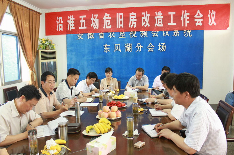 531,安徽农垦集团副总经理刘超在东风湖农场主持召开沿淮五场危旧房改造工作会议。寿西湖、正阳关、淮南、水家湖、东风湖等5个农场和集团公司相关部门、现代农业工程安徽农垦集团负责人参加了会议。