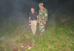夜晚,堤坝上一盏盏白炽灯连成一线,尽管因电压低有所灰暗,但还是极大地方便了行走。电筒射出的光束到处可见,三五成阵的巡堤查险人员一批接一批,有农场职工,有武警官兵,他们呈一字排开,沿着堤顶、堤肩、堤身和堤脚仔细检查。有时他们的脸几乎贴着地面,是那么的谨小和慎微,我想,任何一处哪怕是一点点的隐患也都会被及时发现。