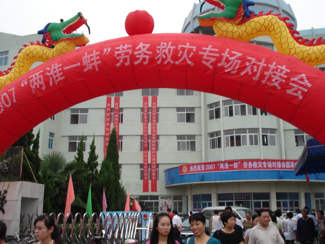 8月16日上午8时,坐落在淮南市的安徽工业高级技工学校的大礼堂内热闹非凡,人群比肩接踵,人脉灵动,原来这里正举办主题为“促进灾区农民工就业” 2007“两淮一蚌”劳务救灾专场对接会。