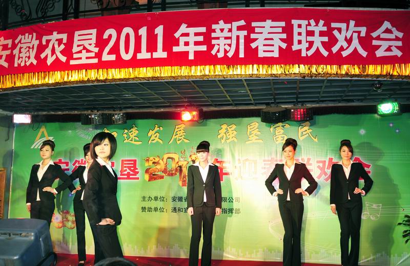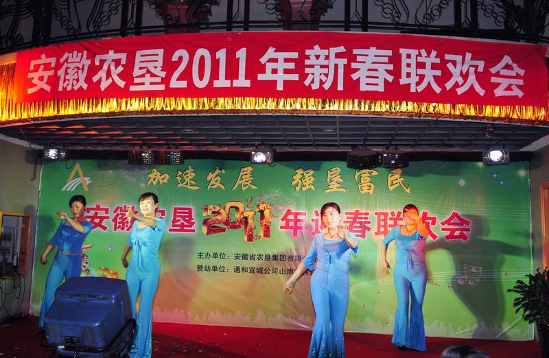 潮涌皖垦千帆竞,一元复始绘新景。新春伊始,1月17日下午,一台由省安徽省农垦集团公司主办、安徽通和宣城公司山南指挥部赞助的 “安徽农垦2011年新春联欢会”在省农垦新长城大酒店隆重举行,联欢会在一曲欢快的《好日子》歌舞拉开了大幕,省农垦集团公司领导班子首先集体合唱了《喀秋莎》《走进新时代》《大坂城姑娘》三首歌曲,掀起了联欢会的第一个高潮,接着来自集团公司机关各部室和在肥企业工作人员,表演了自编自演或改编的歌舞、小品、诗朗诵、大合唱等节目,内容丰富生动,艺术感染力强,热情讴歌了安徽农垦经济社会发展的成就和农垦人幸福生活指数的日益增长,精彩纷呈的表演不时引起全场热烈的牚声,前来参加全省农垦工作会议的垦区各农场、公司的领导一同观看了演出。联欢会上还不时穿插着互动游戏和抽奖活动,联欢会热烈奔放,高潮迭起,最后联欢会在机关部室负责人组成的合唱组的高亢的《英雄赞歌》、《歌唱祖国》歌声中结束。