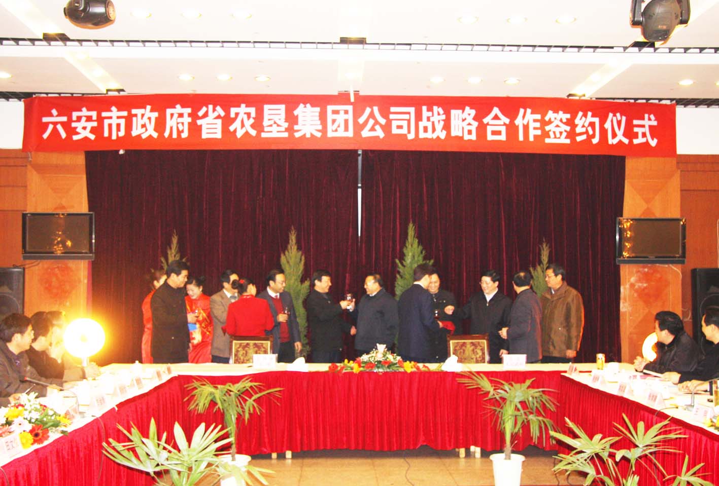 仪式上,六安市副市长王翔与安徽省农垦集团公司总经理李卓民签订了六安市政府与安徽省农垦集团公司战略框架协议。县委书记、县长张绪鹏与寿西湖农场、正阳关农场场长刘国强签订了寿县县政府与寿西湖农场共建寿县工业园区补充协议。