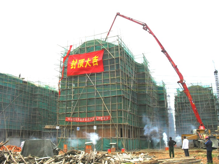 5月9日,阳光明媚。水家湖农场第一期廉租房项目工程施工现场一派热闹景象,上午8时许,随着阵阵爆竹和礼花声,商砼搅拌打浆机的长臂高高伸向五楼顶层,3栋楼房相继封顶,标志着该场一期廉租住房主体工程进入扫尾阶段,各楼层将相继封顶。