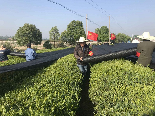 4月是春茶采摘黄金季,光照时长、日照量大加速茶树的新陈代谢,影响到鲜叶品质,需要采取适度遮阴的办法,有效提高鲜叶中的叶绿素和氨基酸,从而保障效益提升。