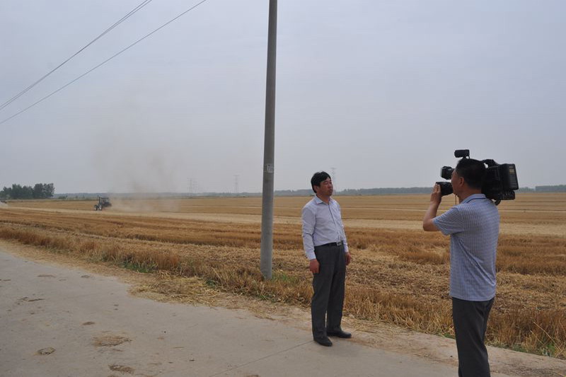 68,明光市广播电视台记者到潘村湖农场采访午收夏种和秸秆禁烧,副场长熊言志接受了电视专访。