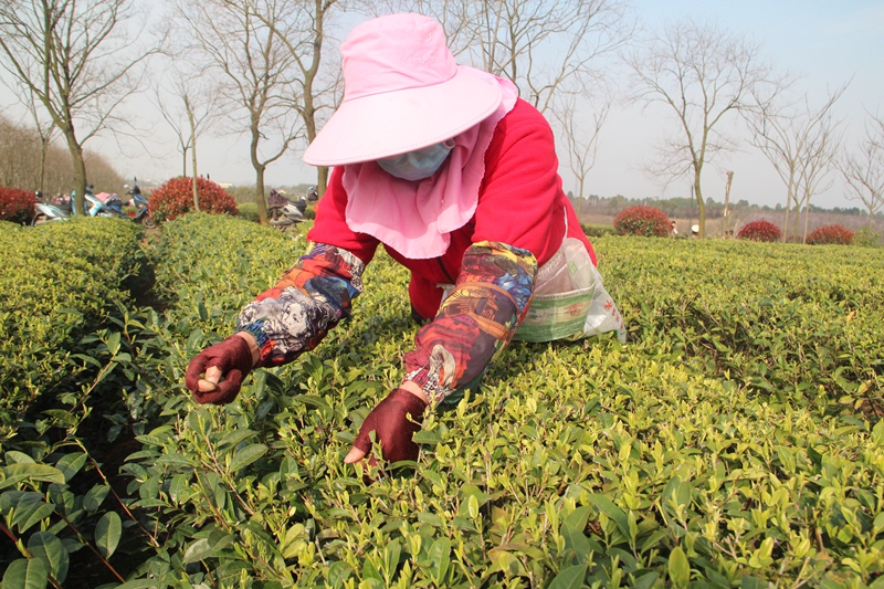 一半春天一半茶,春分时节采茶忙。3月19日,皖垦茶业集团十字铺茶场公司统一经营的名优茶园基地,满山是青翠的茶树,微风吹拂下,阵阵清香扑鼻而来。茶叶已抽出鲜嫩的芽尖绿苞,近300名采茶工人正在采茶。只见他们双手在春茶尖上快速地跳跃,手起叶落,上下翻飞,一派繁忙景象。战“疫”决胜在关键期,皖垦茶业集团复工达产时不待我。