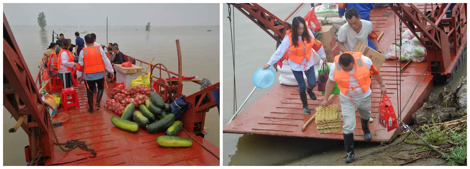 这些庄台上的受灾群众、堤防人员和汛期值班人员的日常所需,能否得到及时充足的保障一直是农场公司党委最关心和牵挂的大事。为此,农场公司积极协调当地政府,争取地方政府的支持,由地方政府专门租用一条渡船,用于阜濛农场范围内职工和居民的生活物资保障和出行需要,公司安排专人配合管理船只使用和安全,每天上午8点至下午4点,船只往返于庄台和安全岗之间,送去由政府统一采购配给的新鲜蔬菜,肉类,应急药品、消毒物品等物资,确保居民和工作人员日常生活。