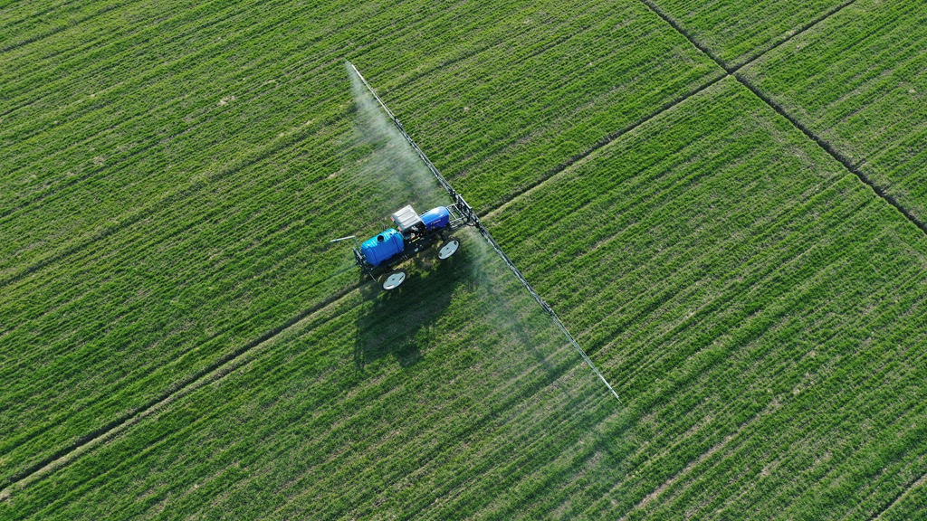 龙亢农场七分场正在进行喷药化除作业 (李 峰  摄)