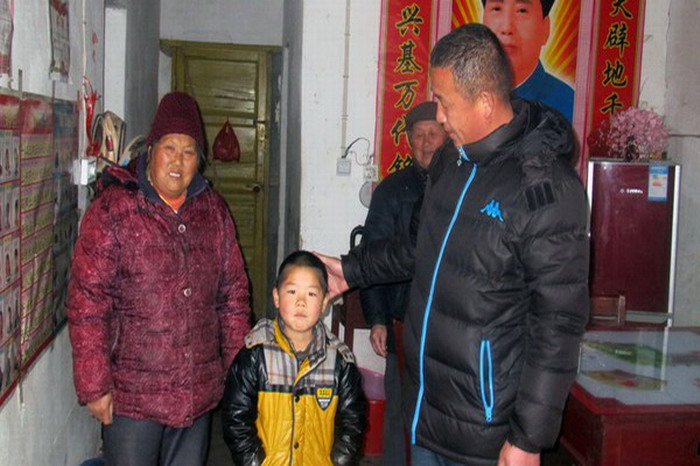 近日,华阳河农场一分场职工陆安庆来到贫困学生谷宇航的家中,对谷宇航的爷爷奶奶嘘寒问暖。