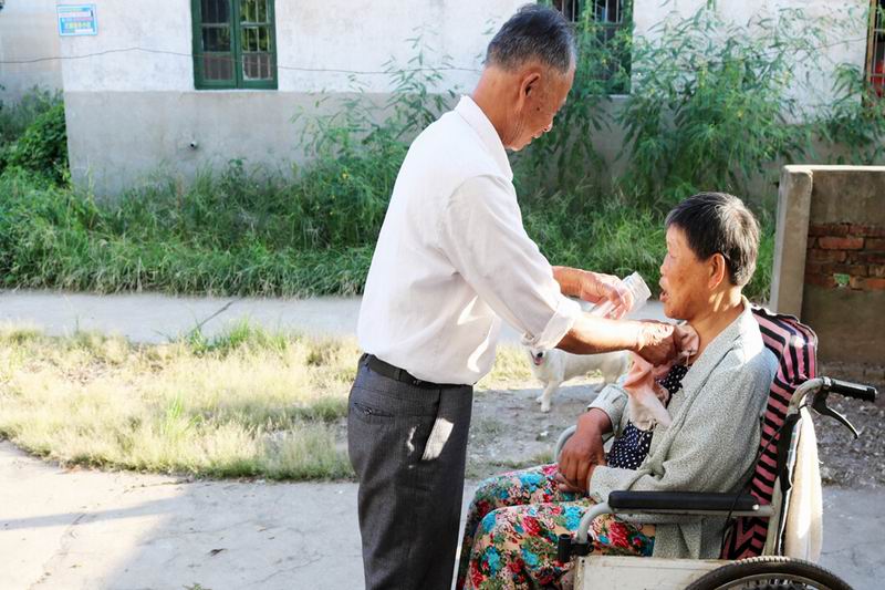 李成龙是华阳河三场华港新村社区居民,5年前,妻子张菊兰突然中风倒下,寒来暑往,1800多个日日夜夜,他每天给妻子梳头擦脸、喂水喂饭、按摩身体,每逢好天气就推着瘫痪的妻子散步,精心照顾生活起居,相濡以沫,不离不弃,用爱与坚持演绎了一段感人至深的家庭故事,用行动诠释了执子之手、与子偕老的承诺。他的事迹经《安庆日报》等媒体报道后,赢得了良好的社会反响。(李龙