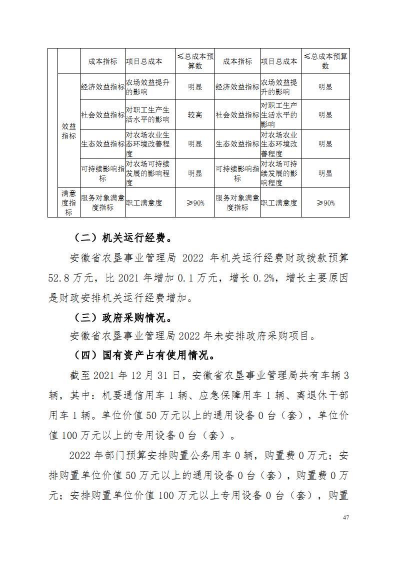 安徽农垦集团:安徽省农垦事业管理局2022年“三公”经费预算
