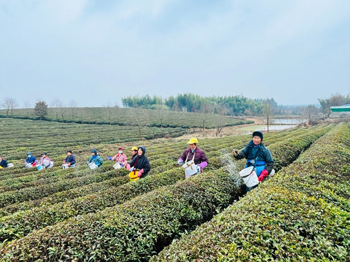 皖垦茶业集团各茶场公司抢抓良好天气,有条不紊地加快推进统一经营茶园春茶管护工作,有序组织人员科学精准追施催芽肥,进一步促进茶叶提质增效,全力以赴力争实现春茶产销“开门红”。许炜 供稿