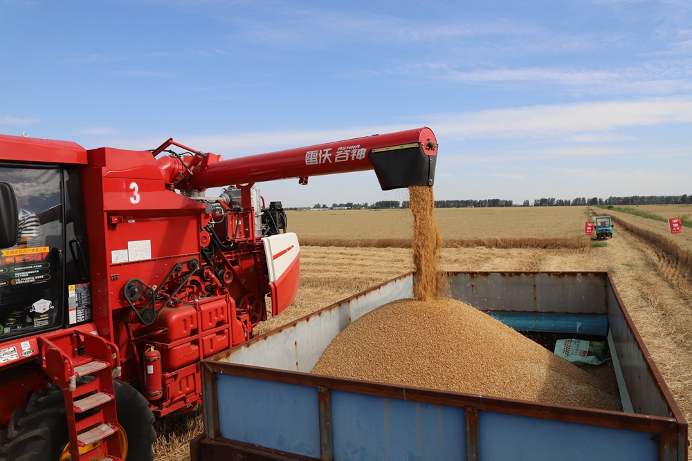 农垦集团今年午收夏种践行“防灾就是增产、减损就是增粮”理念,全力打好午收夏种攻坚战,变丰收在望为丰产到手。截至6月3日,安徽农垦已收获小麦55.1万亩,完成进度为73.9%,其中,垦区内小麦已收获24.4万亩,完成进度为78.4%;流转和托管地小麦已收获30.8万亩,完成进度为70.7%。
