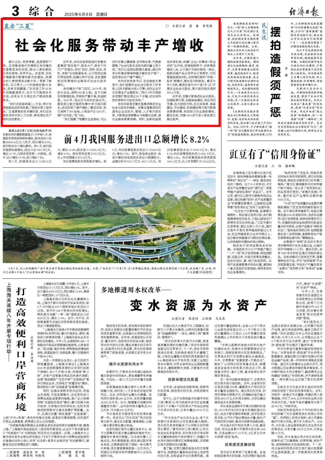 (本报道刊载于6月8日《经济日报》3版头条,原文名称《社会化服务带动丰产增收》)