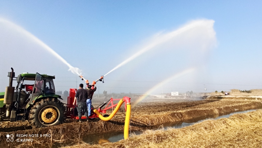 方邱湖农场购置6台PGJ80喷灌机投入抗旱保苗作业,该喷灌机喷幅可达65米,可覆盖片区所有条田沟渠,减少肥水流失,增强作业质量和效率。(王忠)