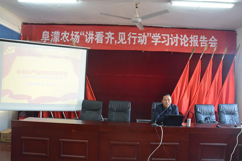 120,阜农场举办讲看齐、见行动学习讨论报告会,特邀阜阳市委讲师团团长燕少红教授为全场党员干部作了题为《全面从严治党,开启新征程》的宣讲报告。