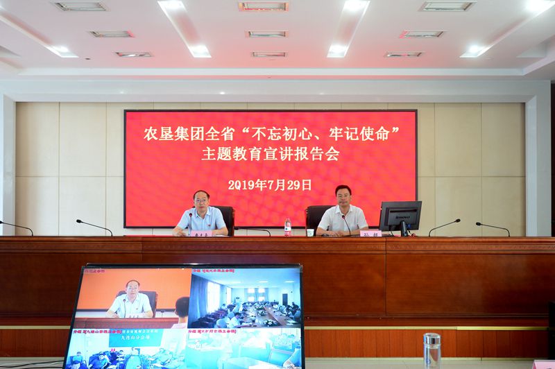 729日上午,全省“不忘初心、牢记使命”主题教育暨“举旗帜送理论”宣讲走进垦区。安徽农业大学人文社科学院党委书记、教授孙超作题为《牢记党的根本宗旨  坚定共产主义理想信念》专题报告。宣讲报告会由集团公司党委书记、董事长詹先豪主持,集团总部全体工作人员现场听课,二级公司中层以上管理人员同步视频观看。