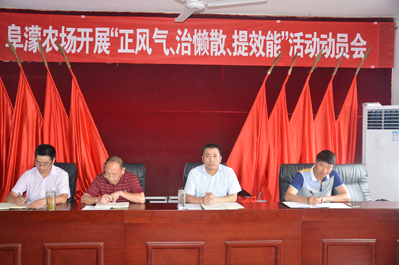 81,阜农场召开正风气、治懒散、提效能活动动员会,全场各级管理人员参加会议。