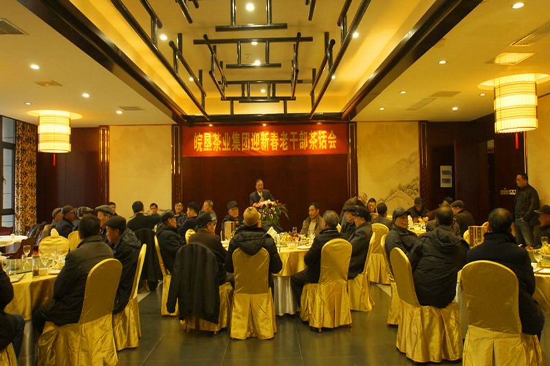118,皖垦茶业集团举行迎新春老干部茶话会,张国祥、刘盛旭、李双陆、曹新界、宗志贵等领导与茶区40多位原场级老干部欢聚一堂、共贺新春,共商茶区发展大计。