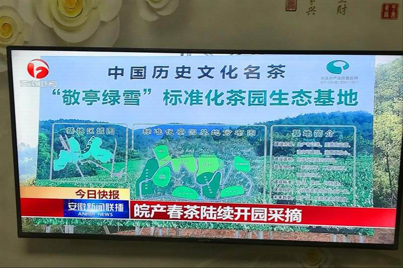 329晚间,安徽卫视新闻联播报道了敬亭绿雪、黄山毛峰、六安瓜片等皖产春茶陆续开园采摘的新闻。