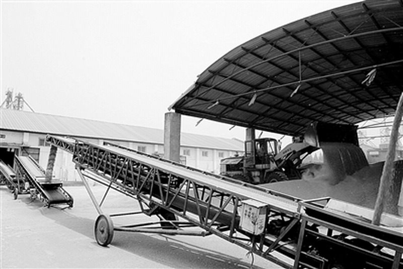 安徽寿西湖农场皖垦种业寿县分公司将收获的小麦通过传送带运输到粮仓中。据悉目前当地烘干设备已全线启动,确保收获的小麦及时烘干。(经济日报201362511版,记者乔金亮摄)