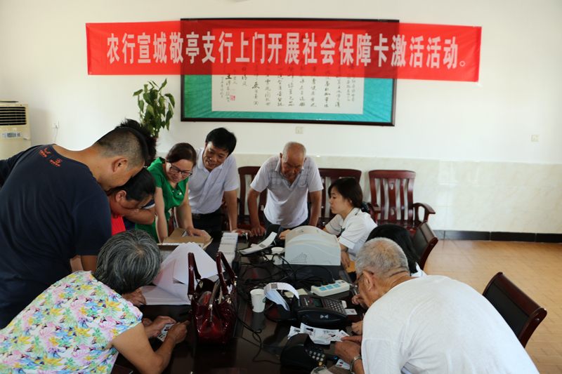 818,农行宣城敬亭支行走进敬亭山茶场现场办公、上门服务,为社区居民激活社保卡,助推社会保障一卡通的普及应用。茶场社会事业科给予了全程协助。