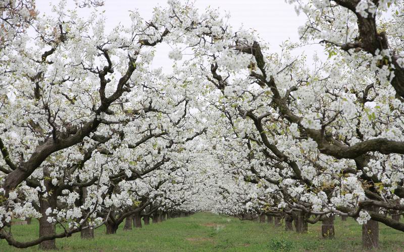 梨花很美,结果硕大,外观黄亮、酥脆多汁、甘甜可口。据权威检测报告,酥梨含有丰富的糖分和人体所需的氨基酸、维生素、矿物质,具有清热解毒、止咳化痰、降温醒酒等功效,被中医界称之为果中甘露子,药中圣醍醐,曾被列入贡品达数百年。多年来,砀山果园场持续提品质塑品牌,以绿色、生态、精品为目标,推行五统一生产管理,通过实施绿色食品和质量追溯体系建设,把传统老字号砀山酥梨打造成为现代特色果品产业,当前正开展梨花授粉等生产管理工作。繁花似锦的果园内,有观赏梨花的八方游客,也有辛苦劳作的授粉职工。