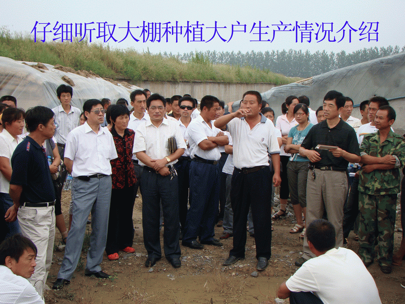2009年8月10日,夹沟农场组织100户身份田高效经济作物种植报名户,前往宿州市王圩、西沟、汤家等大棚蔬菜连片种植区考察学习。场领导温广信、孙家平、牛泉清等带队考察。