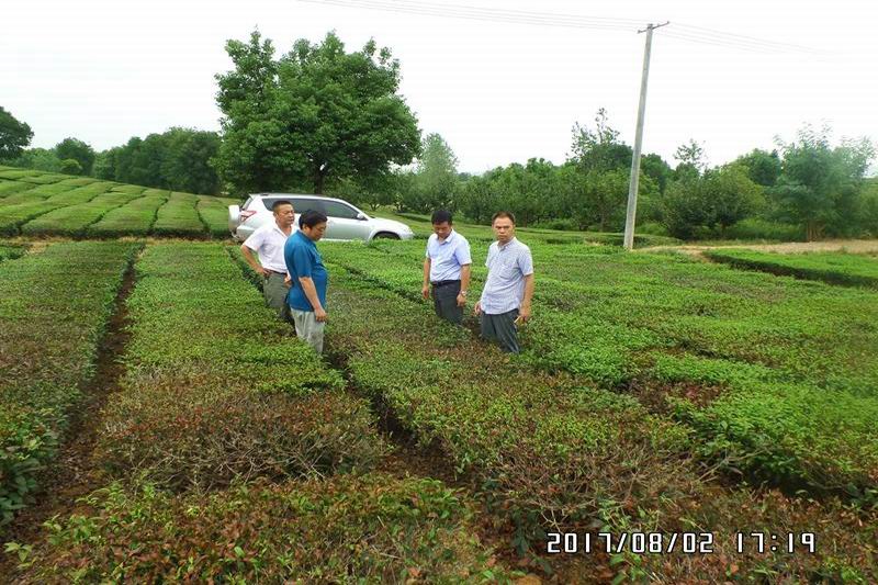 82,宣城市、宣州区两级民政局有关领导一行,到敬亭山茶场核查茶园旱灾灾情,场领导孙良华、耿兴龙陪同。