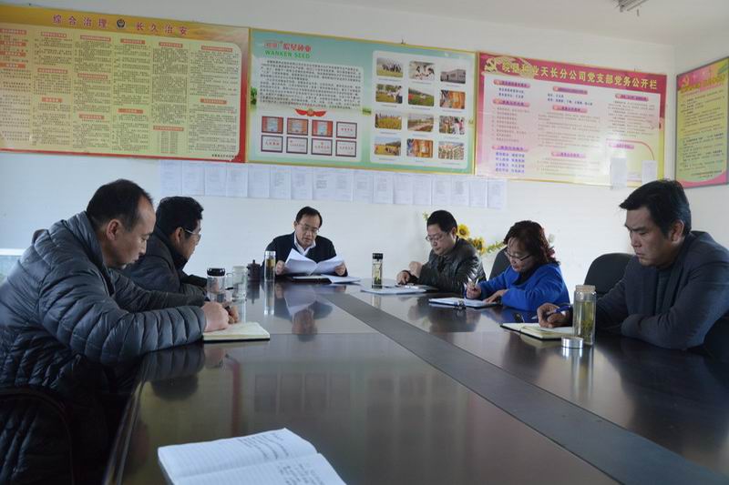 330,皖垦种业天长分公司经理汪登松主持召开专题会议,传达上级会议精神,部署今年重点工作。
