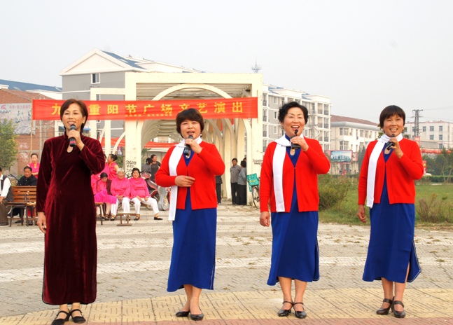 为隆重庆祝重阳节,在全场营造敬老爱老助老的良好社会风气,社区管委会举办了此次“九九”重阳节广场文艺演出。演出的节目包括舞蹈、歌曲、戏曲等。青年演员用欢快的歌声和优美的舞姿,讴歌了农场敬老爱老助老的优秀传统美德;老年演员用铿锵不老的唱腔和高亢激昂的旋律塑造了他们“人老不失志,余热辉九重”的人生追求,表现了他们对晚年美好幸福生活的满足……。演员们精彩的表演不时博得现场观众的热烈掌声,整场演出颂扬了龙亢农场老龄事业的蓬勃发展,体现了龙亢农场老年人老有所养、老有所乐、老有所为的精神风貌。