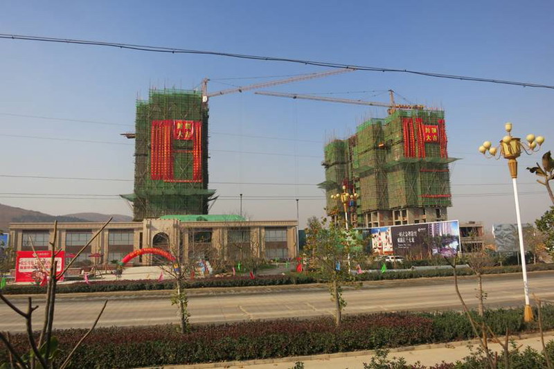 两幢楼宇封顶。建设、施工、监理单位到场见证。