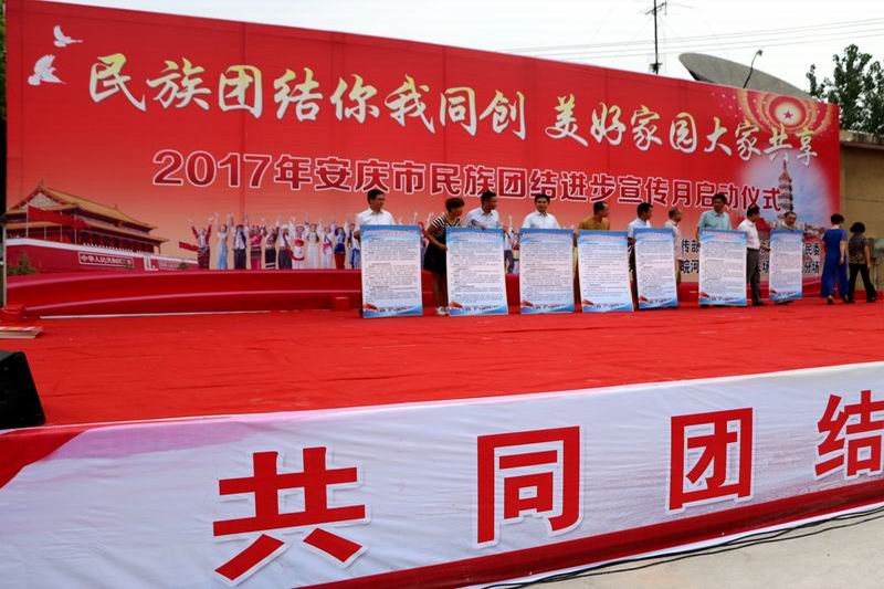 92,由安庆市委宣传部、统战部、教体局、民委联合主办,安徽农垦皖河农场及三益回民分场承办的2017民族团结进步宣传月活动启幕,深入开展民族团结进步宣传教育活动,着力推动全市民族团结进步事业创新发展。