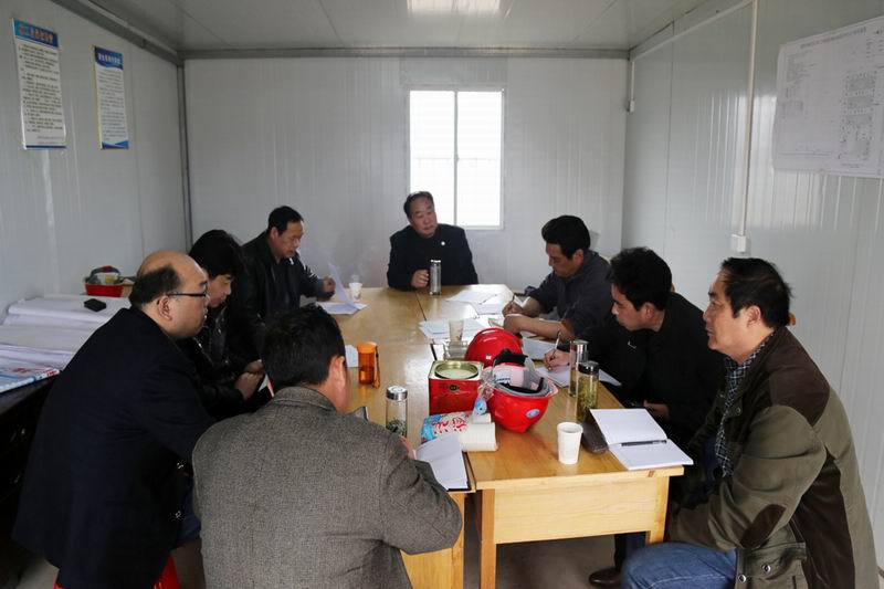 调度会前,孙国安带领大家首先检查了工地现场。会上,针对工程进度和质量安全,孙国安要求,一要抢抓进度、倒排工期,确保粮库主体工程墙体在3月底前全面封顶、屋面梁吊安装和墙面粉刷等配套部分在4月底前基本完工、5月完成验收并准备投运;二要加强现场管理,规范施工,保障工程质量和工地安全;三要调配好施工力量。各项目部要按照上述时间节点,配置好钢筋工、木工、砖工等各工种人员,将具体目标量化细化到日、落实责任到人。