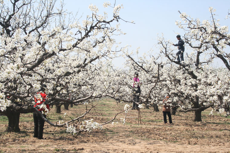 梨花授粉是酥梨生产中的一个重要环节。长期以来,砀山果园场高度重视此项工作,每年都制定工作方案,全面动员布置,明确专人负责,加强督促检查。4月上中旬,全场职工全力以赴,积极采集花粉,及时协调用工,切实做好梨花授粉工作。