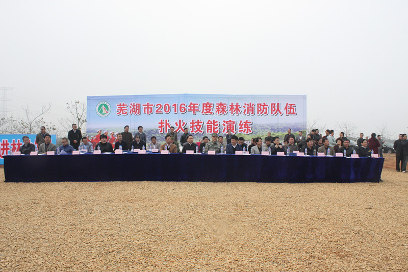 1115芜湖市2016森林消防队伍扑火技能演练在安徽农垦九连山茶场跑马山场举行秋点兵。本次演练由芜湖市森林防火指挥部、市林业局主办,九连山茶场、芜湖县林业局承办。芜湖市副市长林绪文出席,市森林防火各成员单位负责人、各县区分管领导及林业局长、有林乡镇负责人和皖垦茶业集团、九连山茶场领导到场观摩。