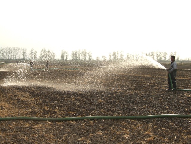 龙亢农场对已播种旱茬小麦适时喷灌补水