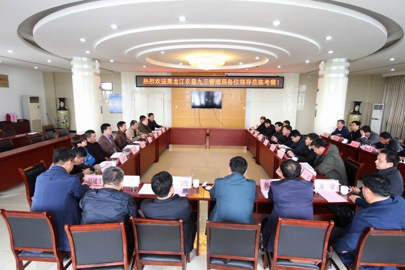 1028,黑龙江农垦九三管理局李国军副局长偕农机局、科技局和所属12个农场负责人到访考察安徽垦区龙亢农场,安徽农垦集团党委委员王占廷及农水科技部负责人、龙亢农场班子成员陪同考察并参加座谈。