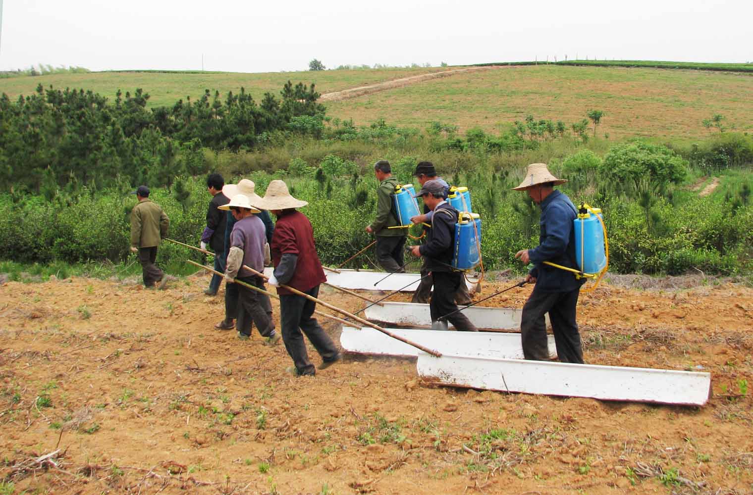 为了探索建立200亩白茶新茶园的科学管理模式,十字铺茶场直属队通过不断试验、比较和总结,创新了一套新的茶园除草方法。一是选准化除时间。谷雨后气温升高、茶叶长势快,同时也是杂草盛发期,第一次化除选在4月底至5月初,在茶叶二叶期前进行化除效果好,可除尽杂草并节约成本;二是采取科学保苗措施。白茶新茶园杂草繁杂,需用草甘磷配施二甲四氯以除尽恶性杂草,但如直接喷施易伤茶苗,他们研制了字式施药护罩,长3米、高25厘米、底宽20厘米,施药时数人列队牵引护罩罩住茶苗,每人牵引一个护罩平行施药,引走匀速一致,施药均匀到位,没有护罩的不施药,既确保了施药质量,又保护了茶苗。(袁有地)