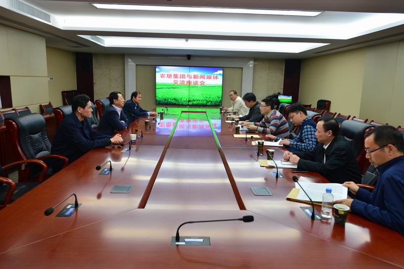 425下午,安徽农垦集团总经理刘超主持召开新闻媒体交流座谈会,进行了加强外宣工作提升农垦社会影响力的对策研讨。新华社安徽分社、人民日报安徽记者站、农民日报安徽记者站、安徽广播电视台、安徽卫视、安徽日报、安徽工人报、安徽科技报等媒体记者应邀参加座谈。