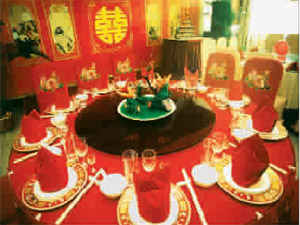 如果说你还不完全知道“人生八大喜”的含义,那 么建议你来黄山大厦走一走、看一看,黄山大厦将 人生的喜事如出生、满月、新婚、祝寿、金榜题名 等在这里浓缩成一种文化,并用菜名和包厢名一一 诠释,如给老人家做寿的“七星高照”、庆祝开业 的“六六大顺”等。类似于这样的文化,黄山大厦 可以说是比比皆是,婚宴就是最经典的说明。黄山 大厦的“红丝带玫瑰婚典”,有古朴典雅的汉族传 统式、新鲜刺激的中西合璧式和浪漫温情的西方浪 漫式。汉族传统式可谓是集传统婚礼文化之大成, 如汉族传统喜堂、抬花轿、牵巾传代、拜拜挑盖 头、改口茶..这一切婚庆礼仪均取自民间,并经包 装后演变为黄山大厦独有的婚庆文化,如汉族传统 喜堂的布置有东瓶西镜,预示新郎新娘婚后平静幸 福的生活;独家包装推出的改口茶,不光是对长辈 的一种尊重,还在婚礼上给许许多多的新郎新娘父 母带来无限的快乐.. 黄山大厦还精心打造“老庐 州 人过年”的品牌年夜饭,充分挖掘老庐州人的历史 和饮食文化,重新包装,以赋予菜肴和服务新的文 化内涵,让有老有小的一家人团团圆圆地一起听庐 剧、品庐州菜、感受庐州文化。