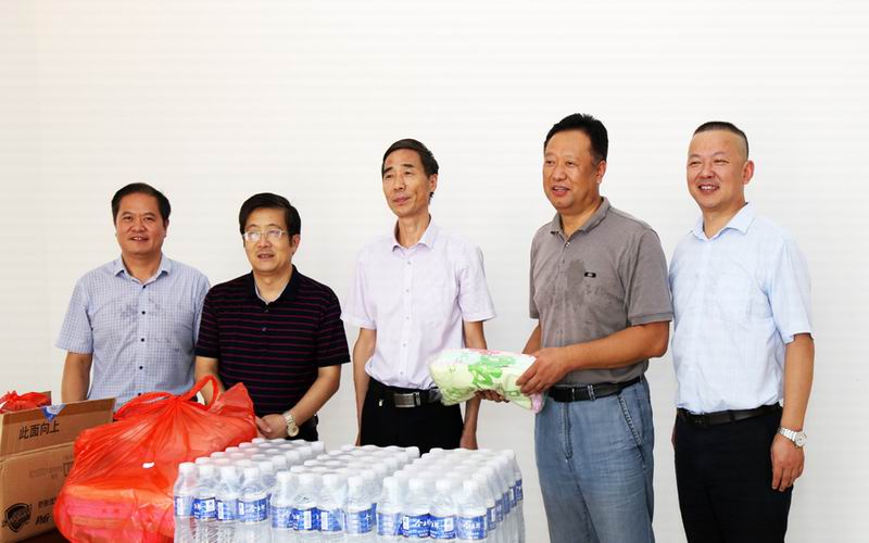 814,高温袭人,宿松县总工会主席余爱国、副主席李志恒一行,到华阳河农场开展送清凉活动。