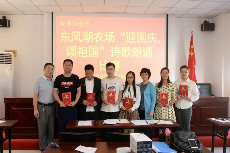 928,东风湖农场举办迎国庆、颂祖国诗歌朗诵比赛主题党日活动,各基层党支部推举的10名青年参赛。