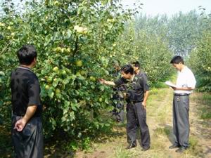 为确保生产管理技术措施真正落实到位,多产优质 果品,促进水果销售,达到“双增”目的,8月26 日,该场组织为期2天秋季生产大检查。各分场场 长、技术员、生产技术部、科研所全体人员及机关 科室部分同志共30人参加了检查。+此次检查分成6 组,重点检查各分场病虫害防治情况、果品质量、 水利及果园卫生等情况。全场抽查面积占总果树面 积的50%%,采取百分制记分法。+通过2天的检查和统 计结果来看,自7月份以来,在连续降雨不利生产工 作正常开展,果园病虫害易暴发的情况下,场领导 与各单位负责人高度重视,狠抓各项技术措施落 实,植保上严格按“无公害”生产标准,使用高效 低毒低残留的杀虫杀菌剂。在连续2年遭受自然灾 害,经济十分困难的情况下,全场干工想方设法, 克服诸多困难,力争今年打个翻身仗,目前总体生 产形势较好,无论是果品内在质量,还是果个、果 面颜色明显好于往年,为水果销售奠定良好基础。 (砀山果园场)